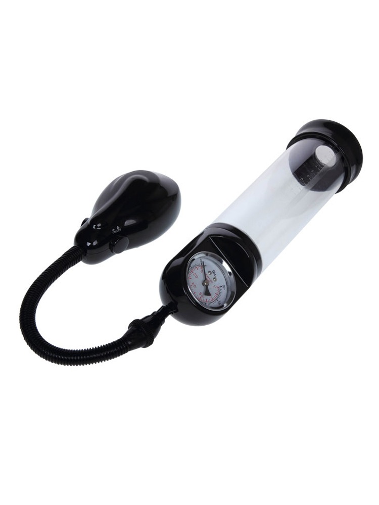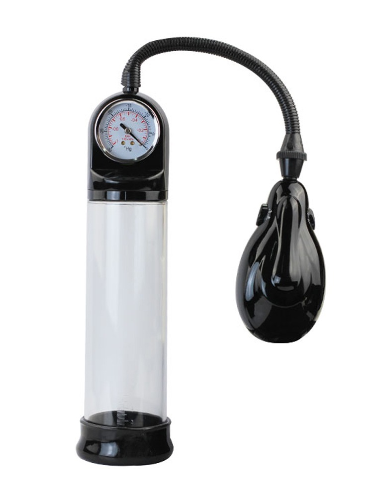 Above the cylinder is a pressure gauge enabling you to monitor the intensity level, allowing you to check whether you're able to handle more pressure than when you first started your penis growth regime. Along the cylinder is a ruler for those who wish to chart their progress. The base of the cylinder is fitted with a thick jelly O-ring, designed to be air-tight thus enabling the vacuum pressure necessary for the pump to work (not air tight = no pressure = no growth).