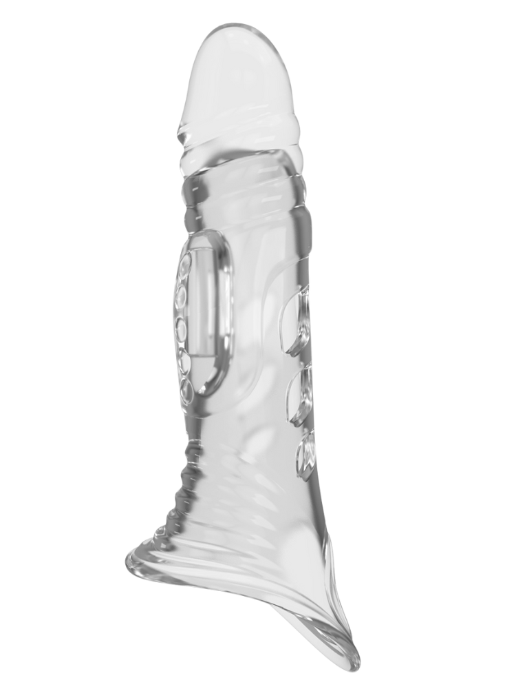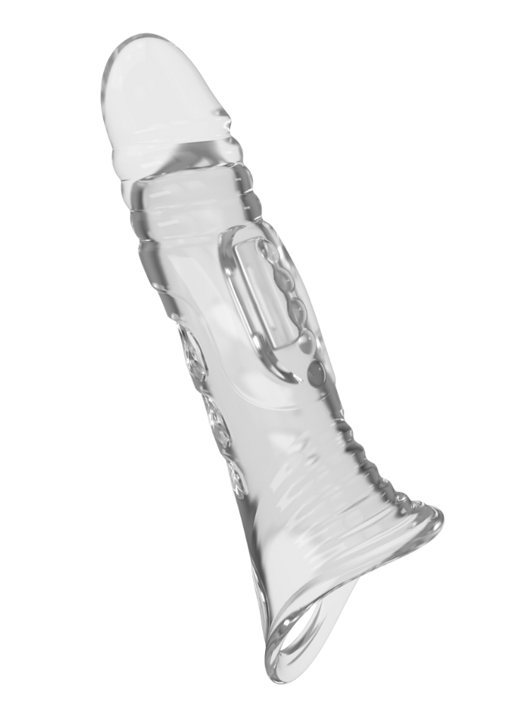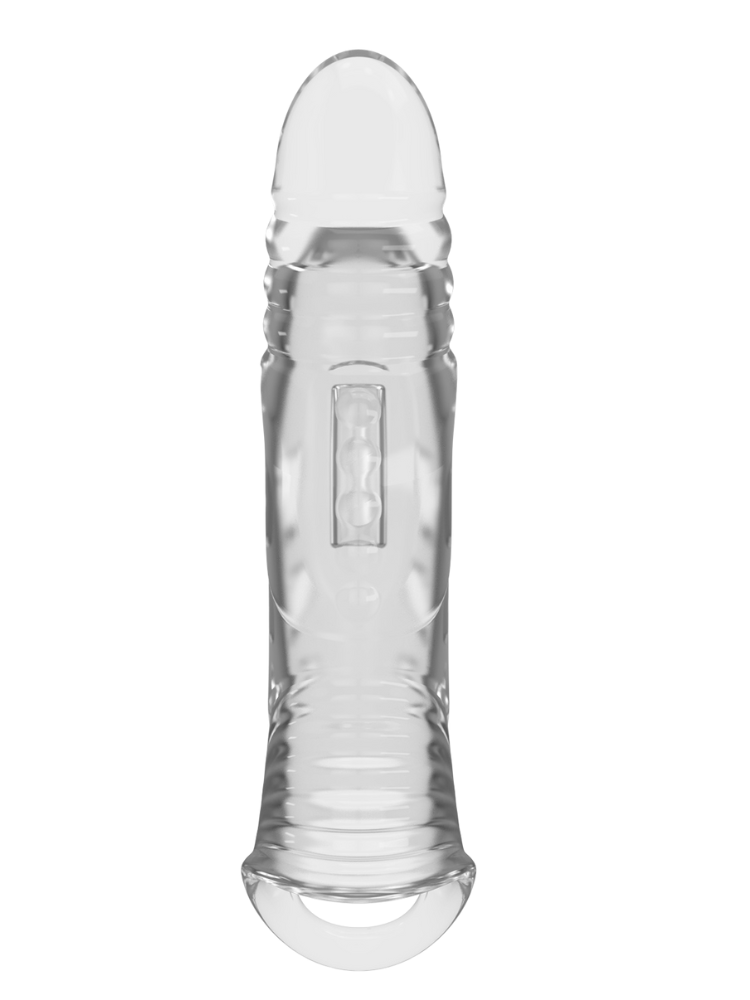 Take your playtime to new dimensions with this Clear Penis Sleeve Extender, designed to boost both your size and stamina. Made from ultra-soft, stretchy material, it slides easily over your shaft to add up to 1.6 inches of length and extra thickness. The realistic tip delivers natural-looking extension, while the textured shaft and raised nubs provide delicious stimulation for your partner with every thrust. The snug-fitting base keeps it secure during play, while the clear finish lets you stay in view for that natural, erotic look.