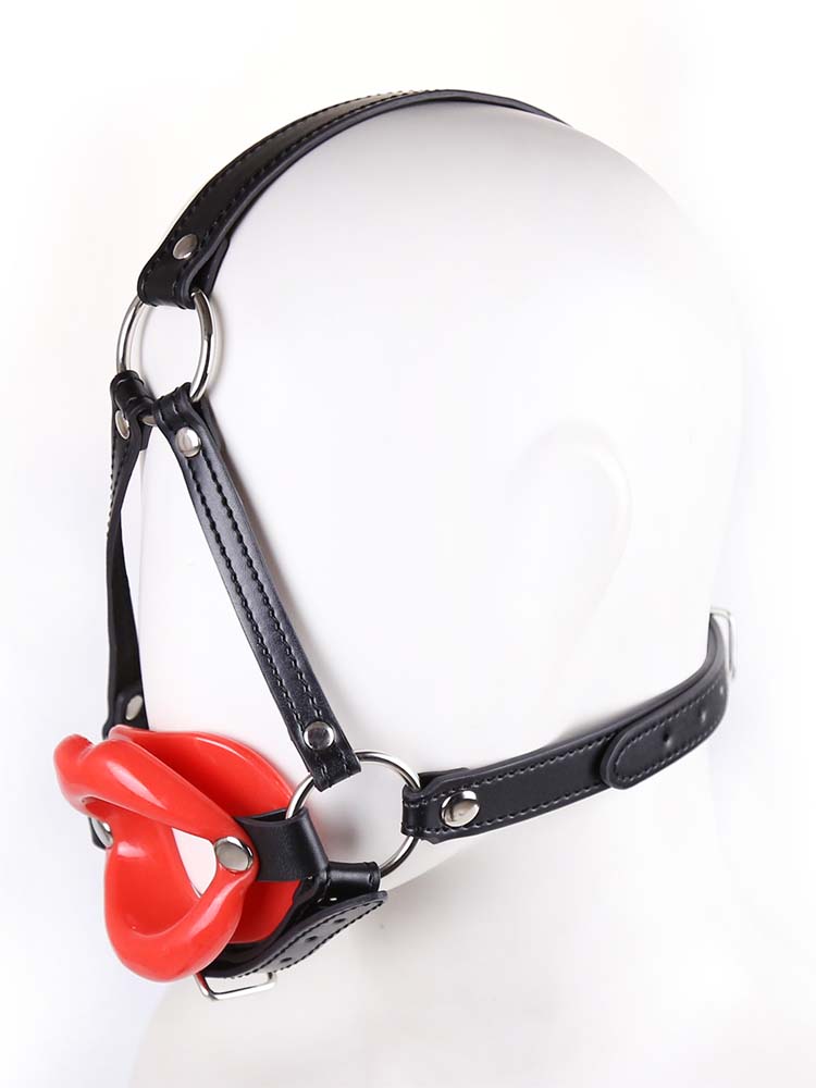 Get your partner squirming with our new Head Harness & Lip Gag. Carefully positioned into your partner/sub/slave's mouth, the lip ring gag prevents them from being able to speak properly. Similar to a ball gag in regards to debilitating the wearers speech, where a lip ring gag differs is by instead of the mouth being blockaded-up it's forced open.