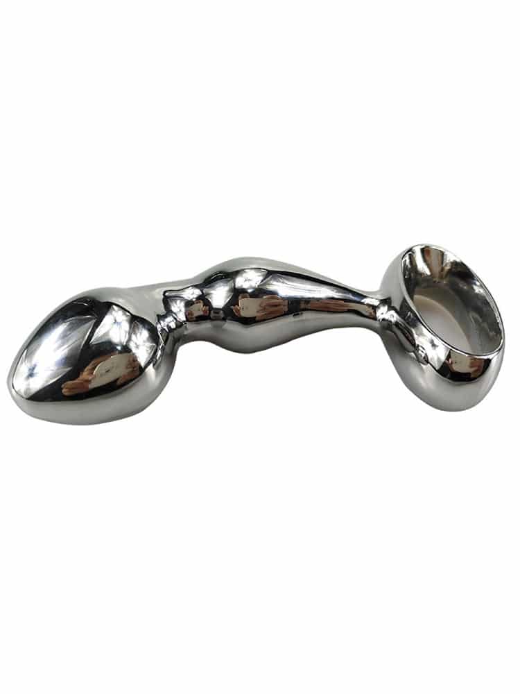 Heavyweight Curved Metal Prostate Massager with Faux Red Jewel – 3.5 Inch