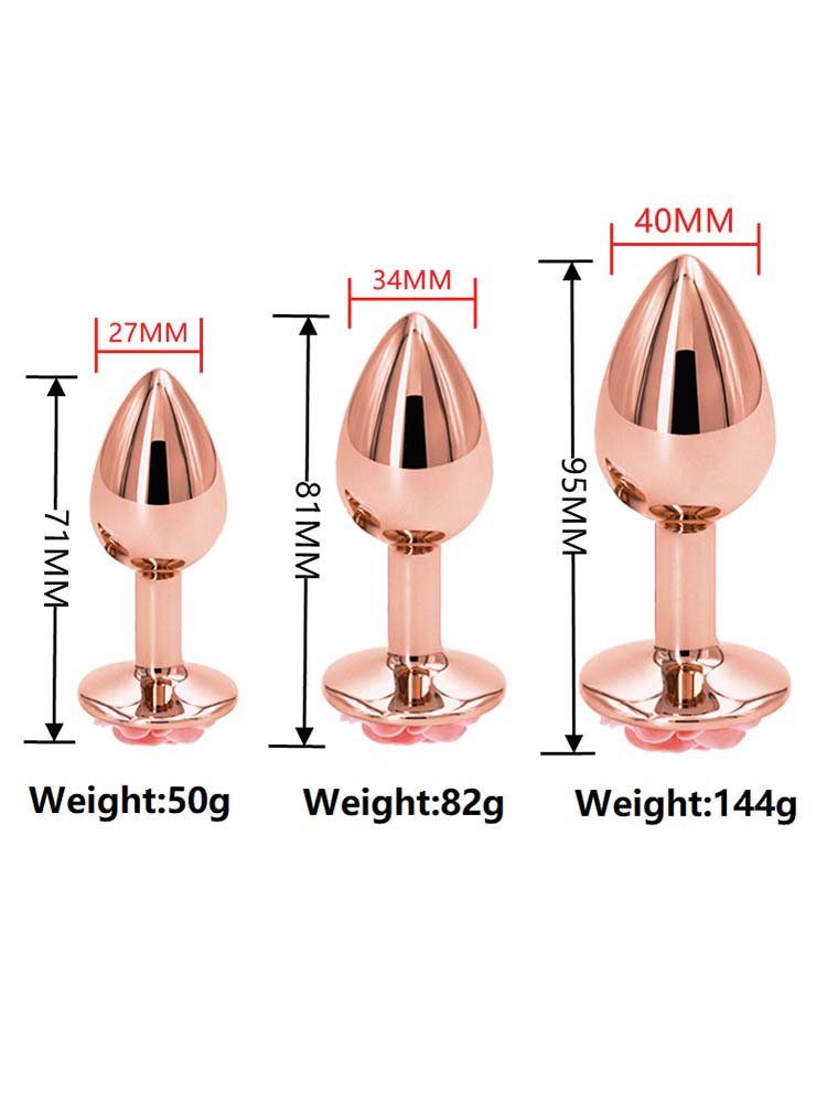Medium Rose Gold Metal Butt Plug with Jewel – 3.1 Inch