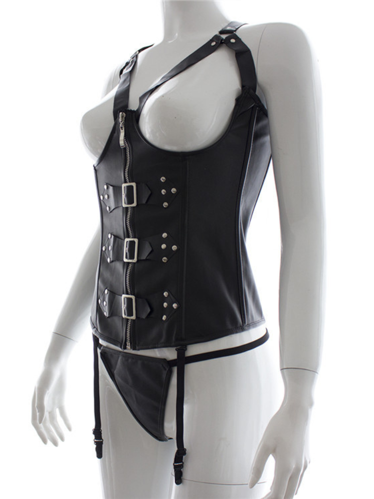 Leather Buckled Boobless Corset