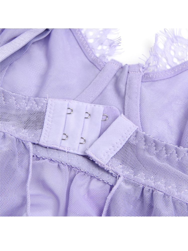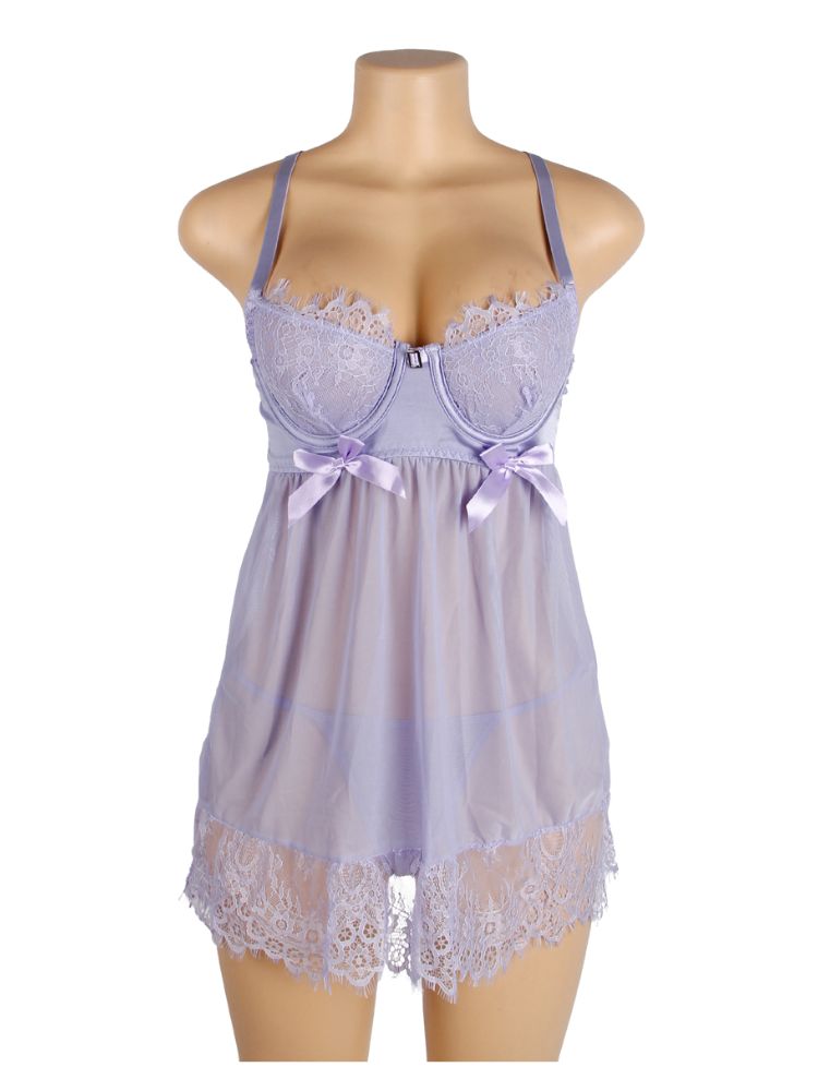 Slip into something irresistibly soft and sweet with this dreamy Lilac Lace Mesh Babydoll. Made for those moments when you want to feel effortlessly beautiful, this sheer piece flatters every curve with its delicate lace cups, satin ribbon accents, and fluttery mesh skirt that hints without revealing too much.