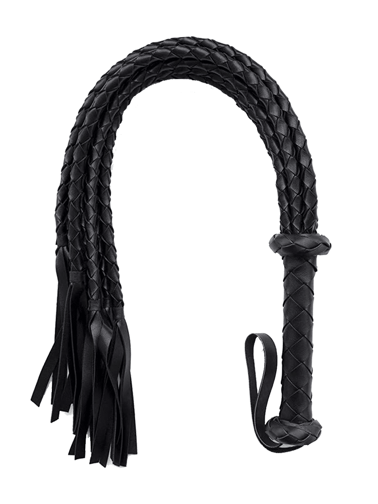 Long 8 Tail Black Woven Whip with Pleather Tassels