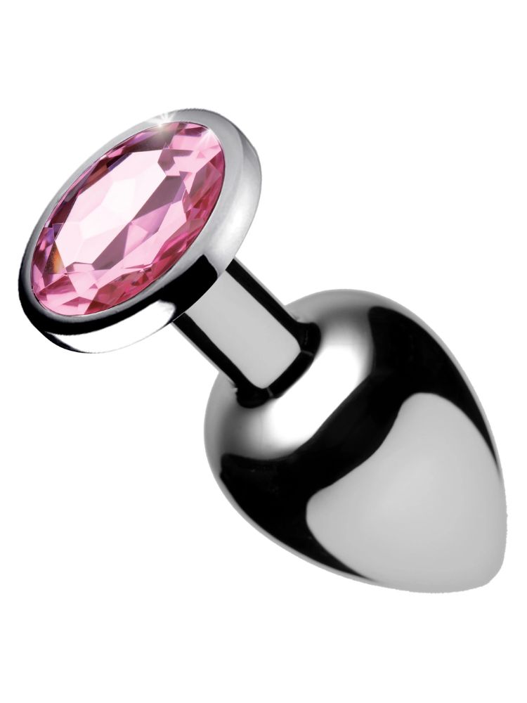 Add a touch of sparkle to your play with this Medium Metal Butt Plug featuring a dazzling pink gem. Smooth, weighty, and perfectly shaped, it offers a satisfying fullness ideal for those with some butt plug experience who want something luxurious, eye-catching, and deliciously firm.