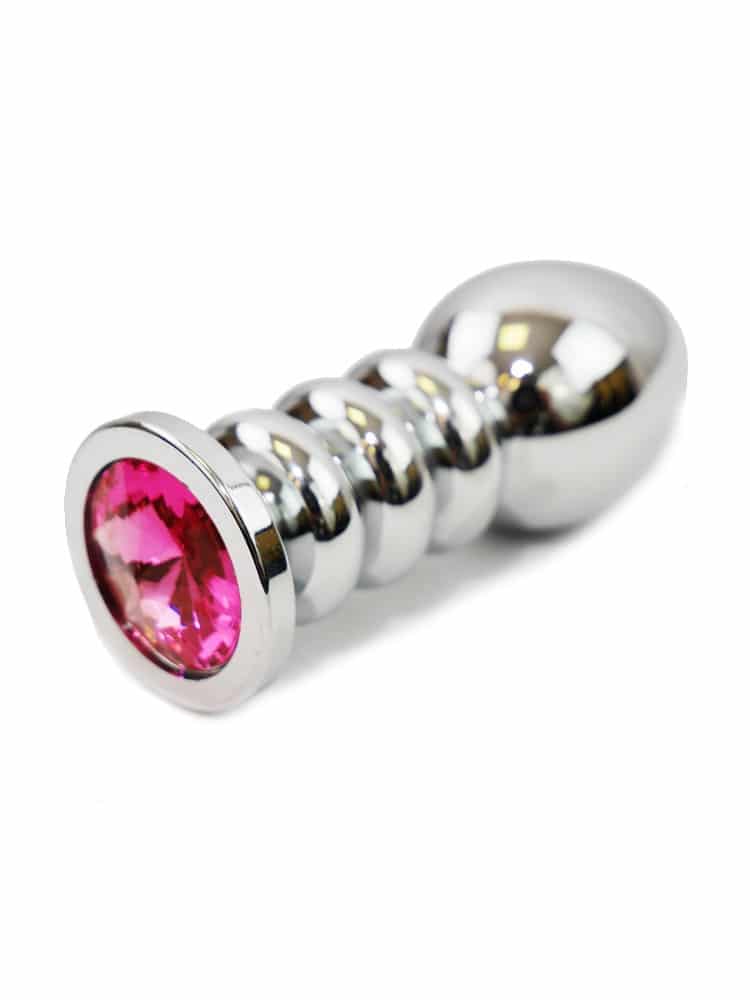 Metal Rippled Butt Plug with Faux Jewel – 3 Inch