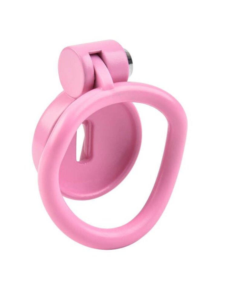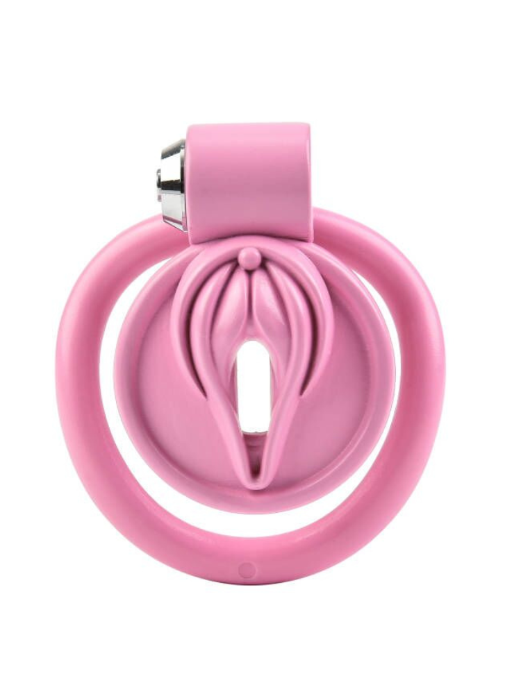 Crafted from lightweight yet durable coated metal, the cage offers a secure 50mm base ring and a flush, flat profile that sits close to the body for comfort and discretion. The labia-shaped front isn’t just for show — it includes a narrow vertical slit for basic urination, with no access for arousal or stroking. Perfect for keyholder dynamics, sissy play, gender expression, or simply adding a cheeky, femme-forward aesthetic to your chastity experience.