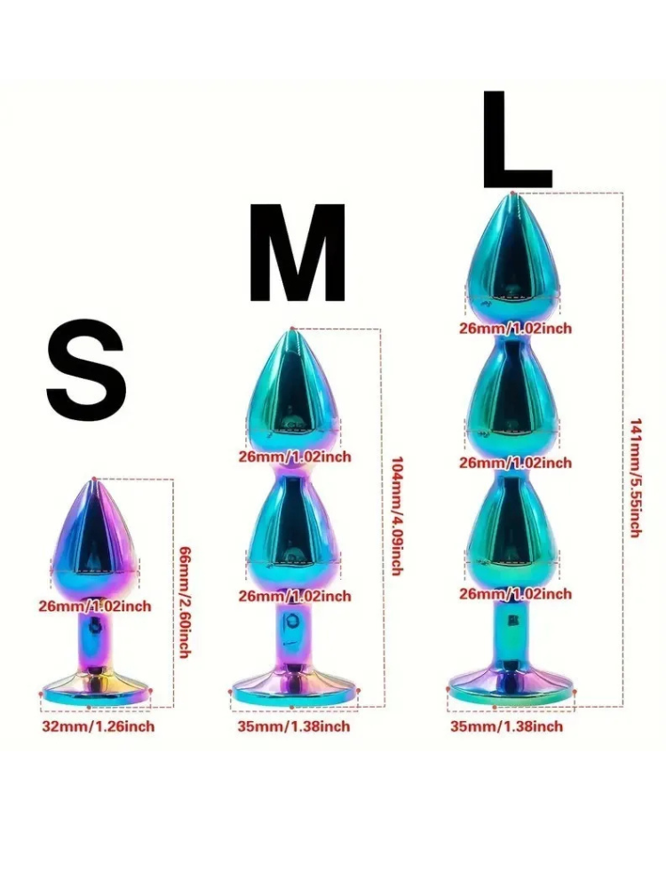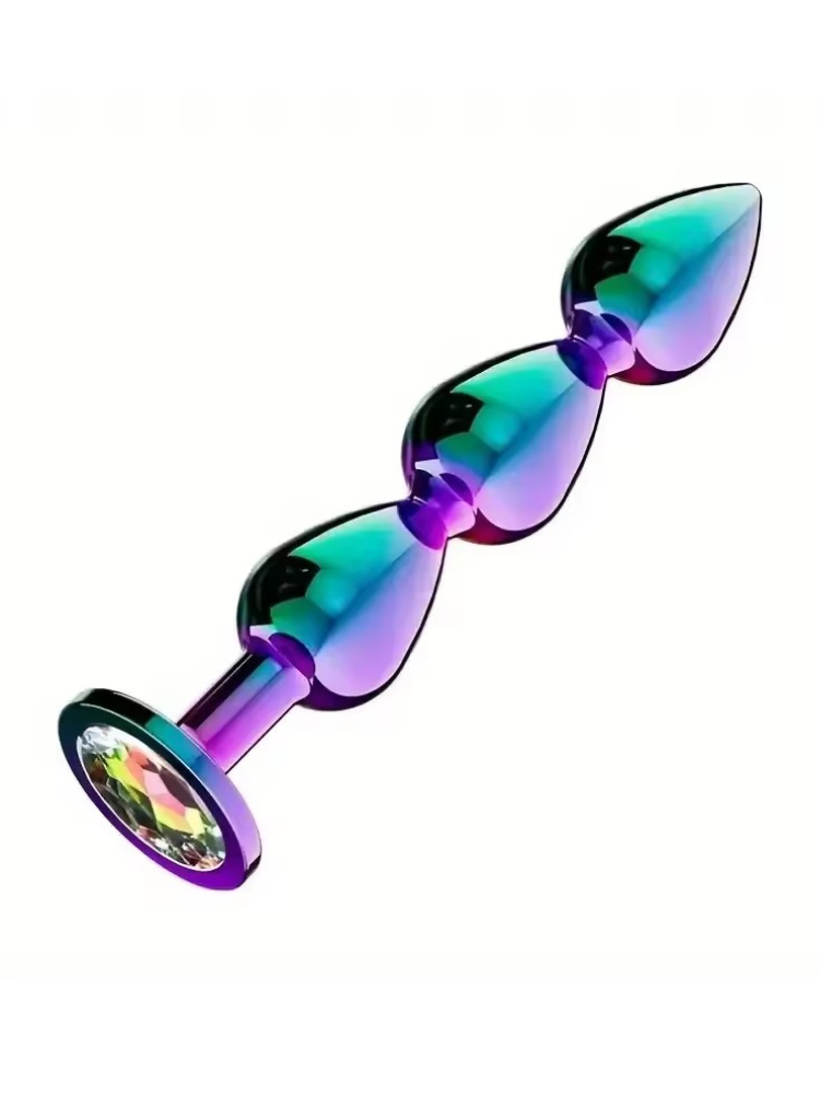 Rainbow Metal Beaded Butt Plug