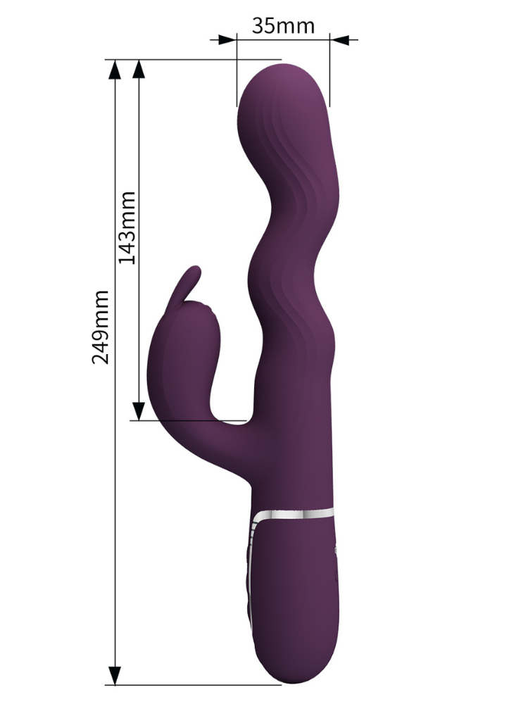 Ready to ride the wave? The Ripple Wave Rabbit Vibrator brings a whole new dimension to dual stimulation — with its curvaceous, undulating shaft and flickering bunny ears, it's all about deep, rhythmic pleasure that builds with every ripple. Crafted from velvety-smooth silicone, this luxe rabbit features a uniquely rippled shaft that massages your G-spot with wave-like intensity, while the soft clitoral ears tease, flutter and pulse. Dual motors let you control each sensation with precision — whether you crave clitoral tickles, internal thrills, or the mind-blowing combo of both.