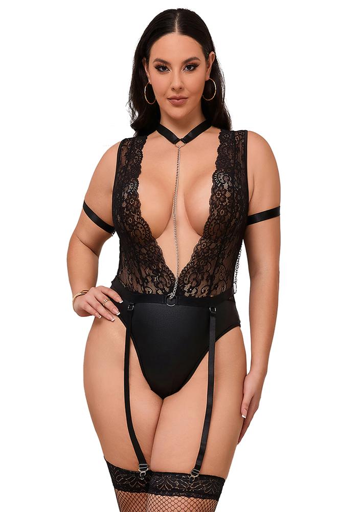 Seductive Bondage Chain Lace Teddy
