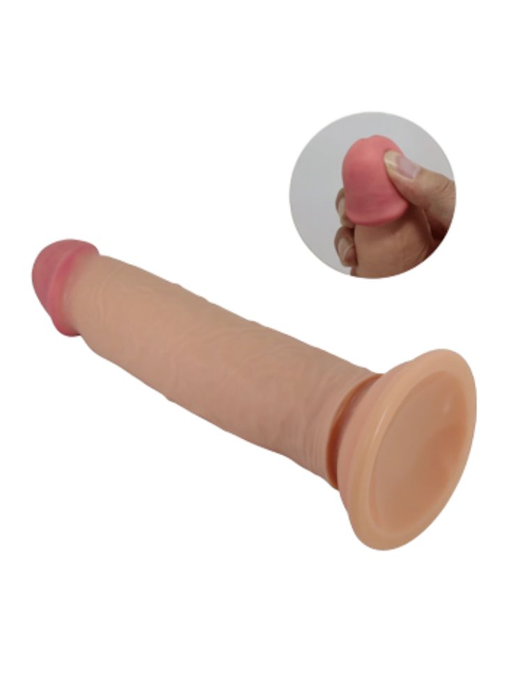 This dildo is made to feel authentic from every angle. Its inner firm core gives it a strong structure, while the outer sleeve glides with your motion – mimicking the movement of real skin for a naturally immersive experience.