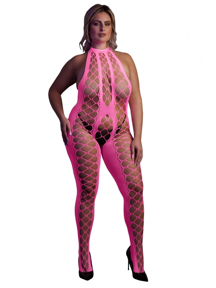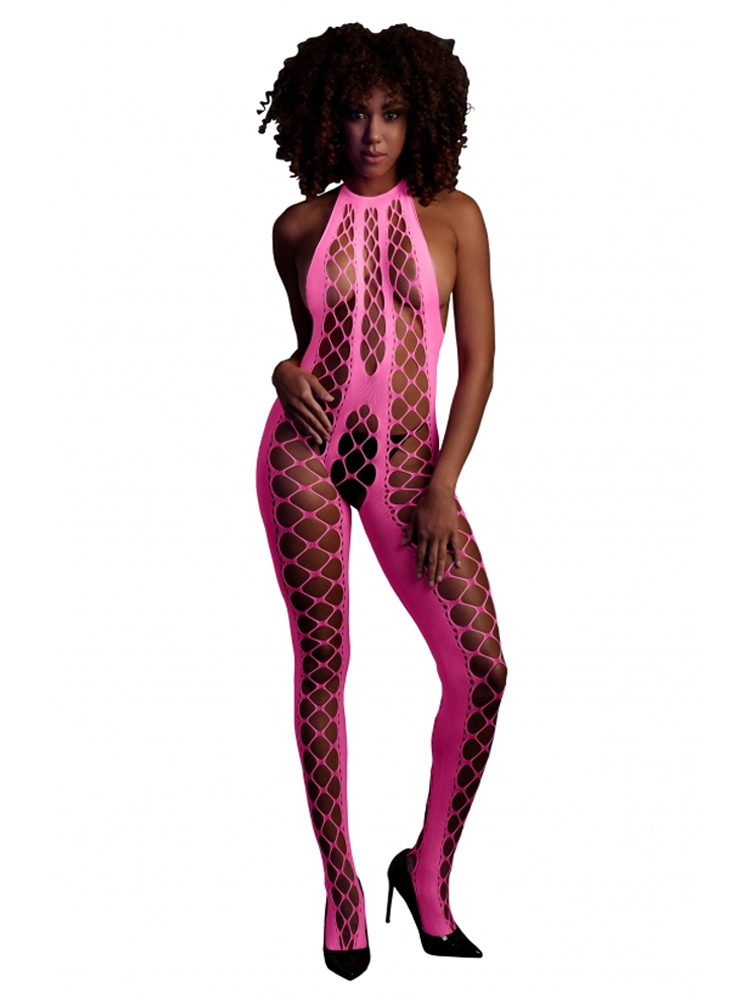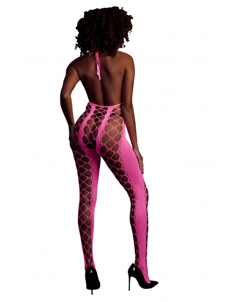 Glow In The Dark Halter Neck Neon Pink Bodystocking