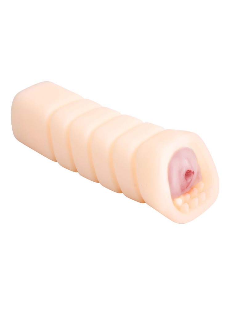 Travel-size vaginal masturbation sleeve, made from soft skin-like material with a ribbed inner lining guaranteed to take your masturbation needs to the next plateau.