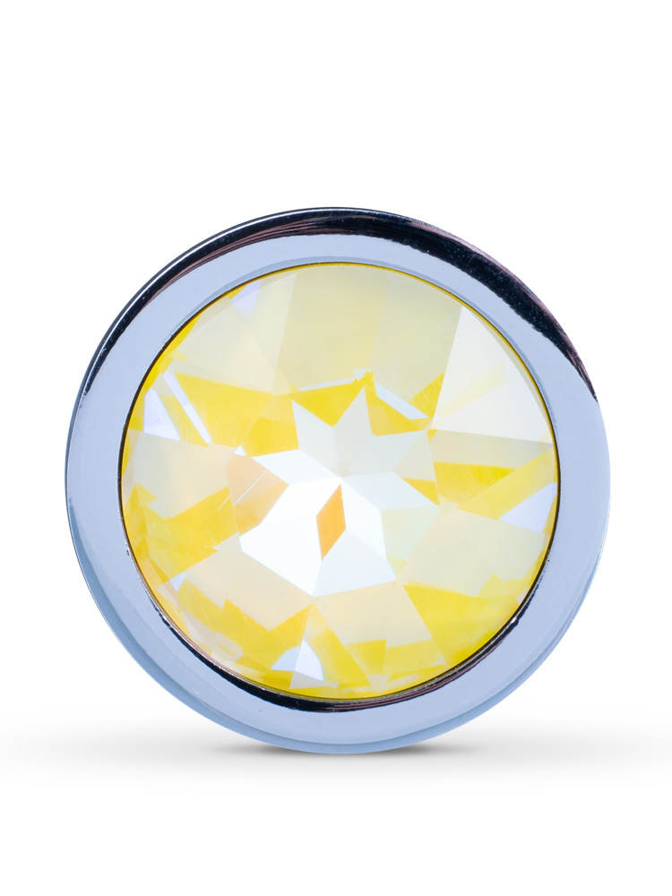 The tapered tip makes insertion gentle and inviting, while the flared base ensures safety and security. But the true showstopper? That brilliant yellow jewel that peeks out once in place—because your backside deserves a little bling, too.